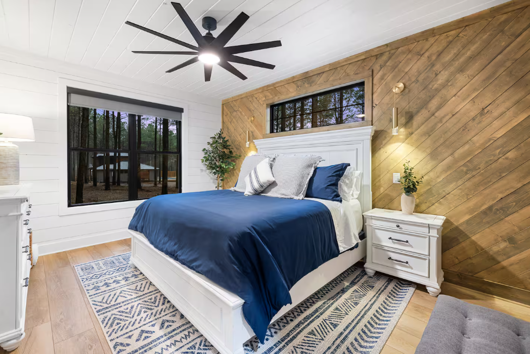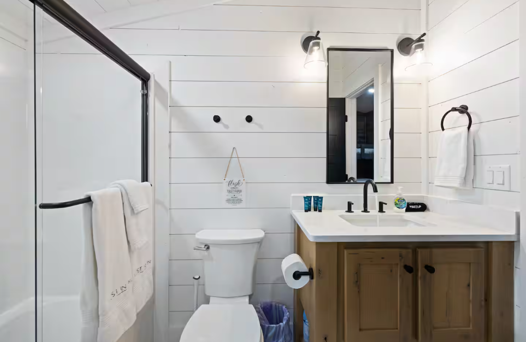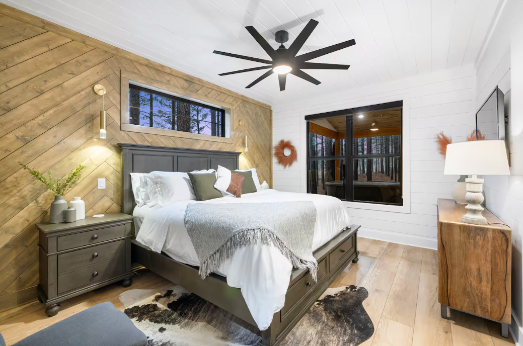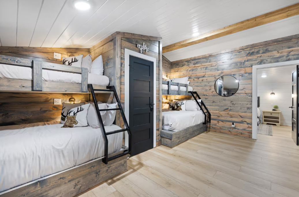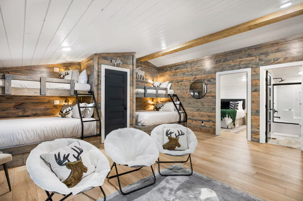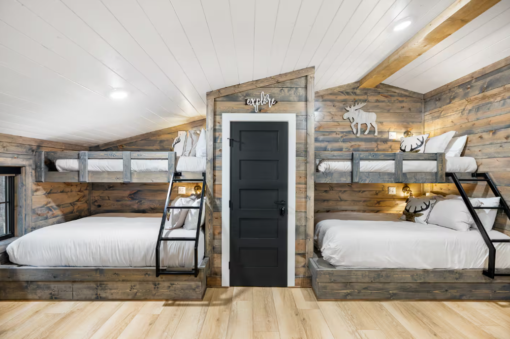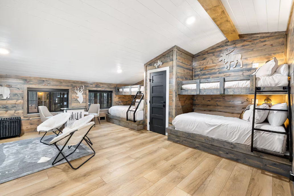 🌲 Bunk Room: Accommodate larger groups or families in the spacious bunk room, featuring two twin beds and two queen beds, ensuring ample space for up to 12 guests.