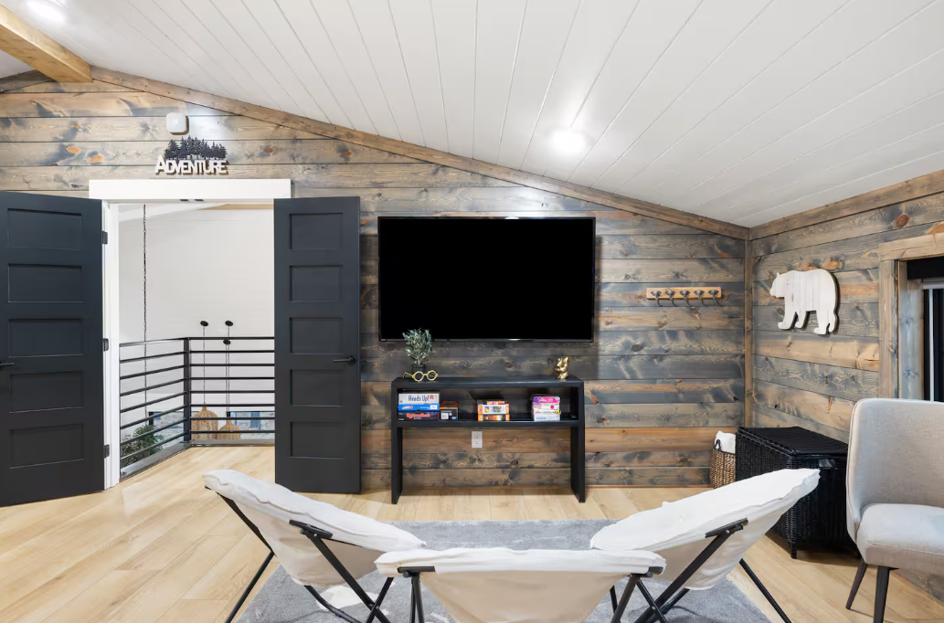 🌲 Entertainment Hub: Enjoy entertainment options with smart TVs throughout the cabin and an arcade game in the bunk room, ensuring endless amusement for all.