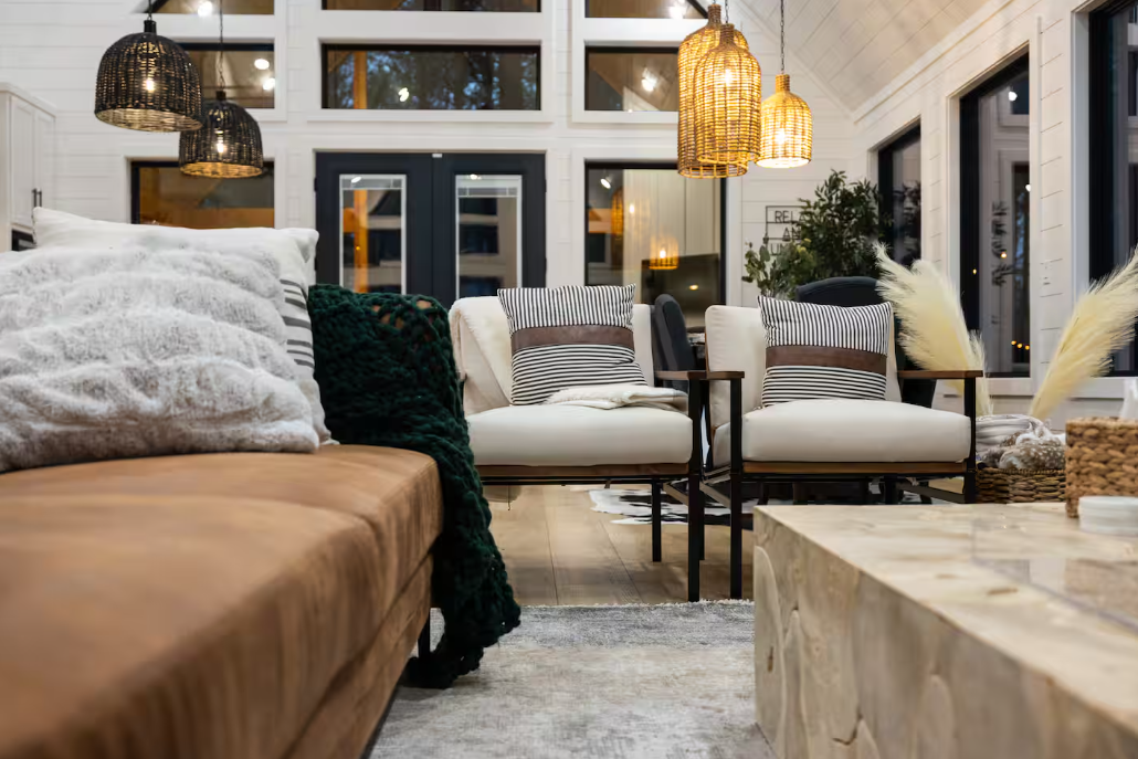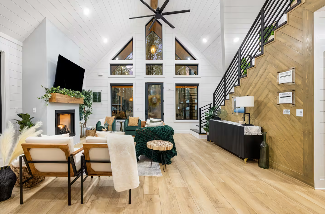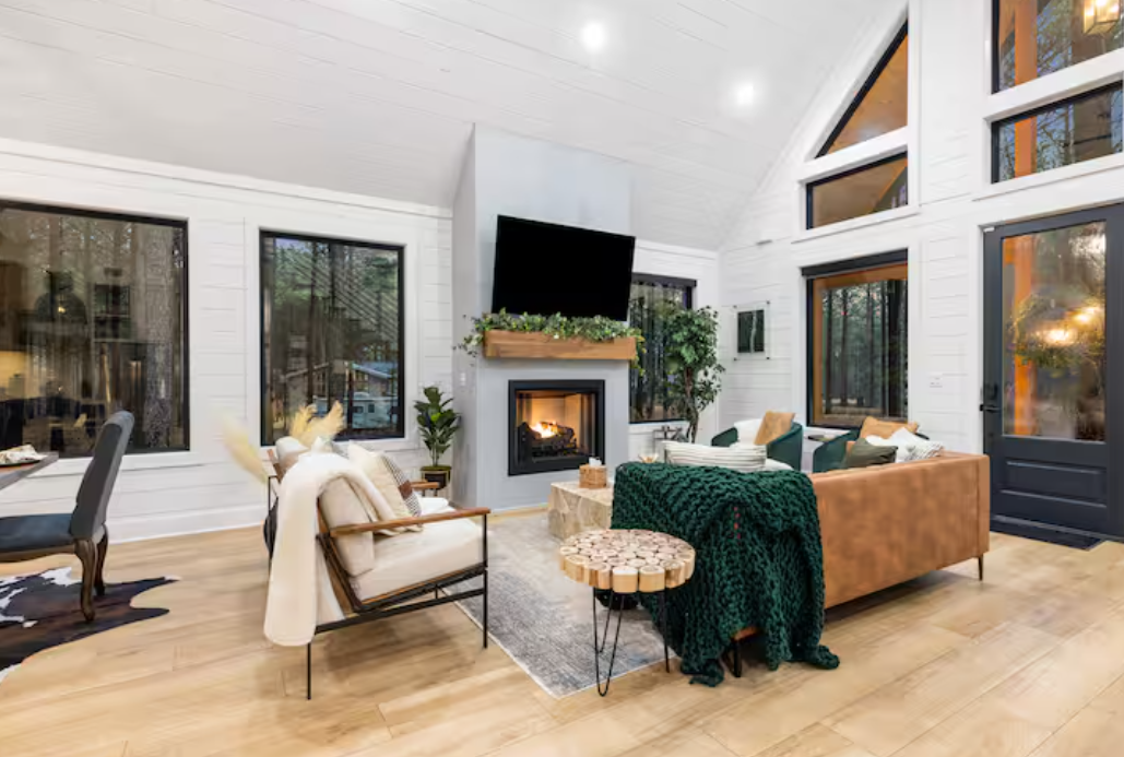🌲 Chic Modern Design: Step into the stylish interior adorned with a modern chic theme, where sleek furnishings and elegant touches create an inviting ambiance.