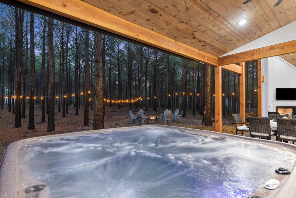 Discover the hidden gem of Hochatown at "Lost in Pine," where secluded luxury meets natural beauty amidst towering pine trees. Immerse yourself in the tranquility of the forest while indulging in modern comforts and endless outdoor adventures: