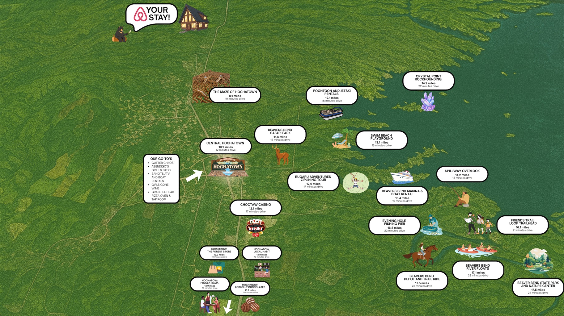 🚗 ~15 min to Hochatownâs top eats & shops