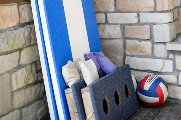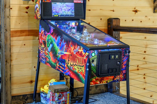 ☞ Arcade, poker table, and pinball machine for all-ages entertainment.