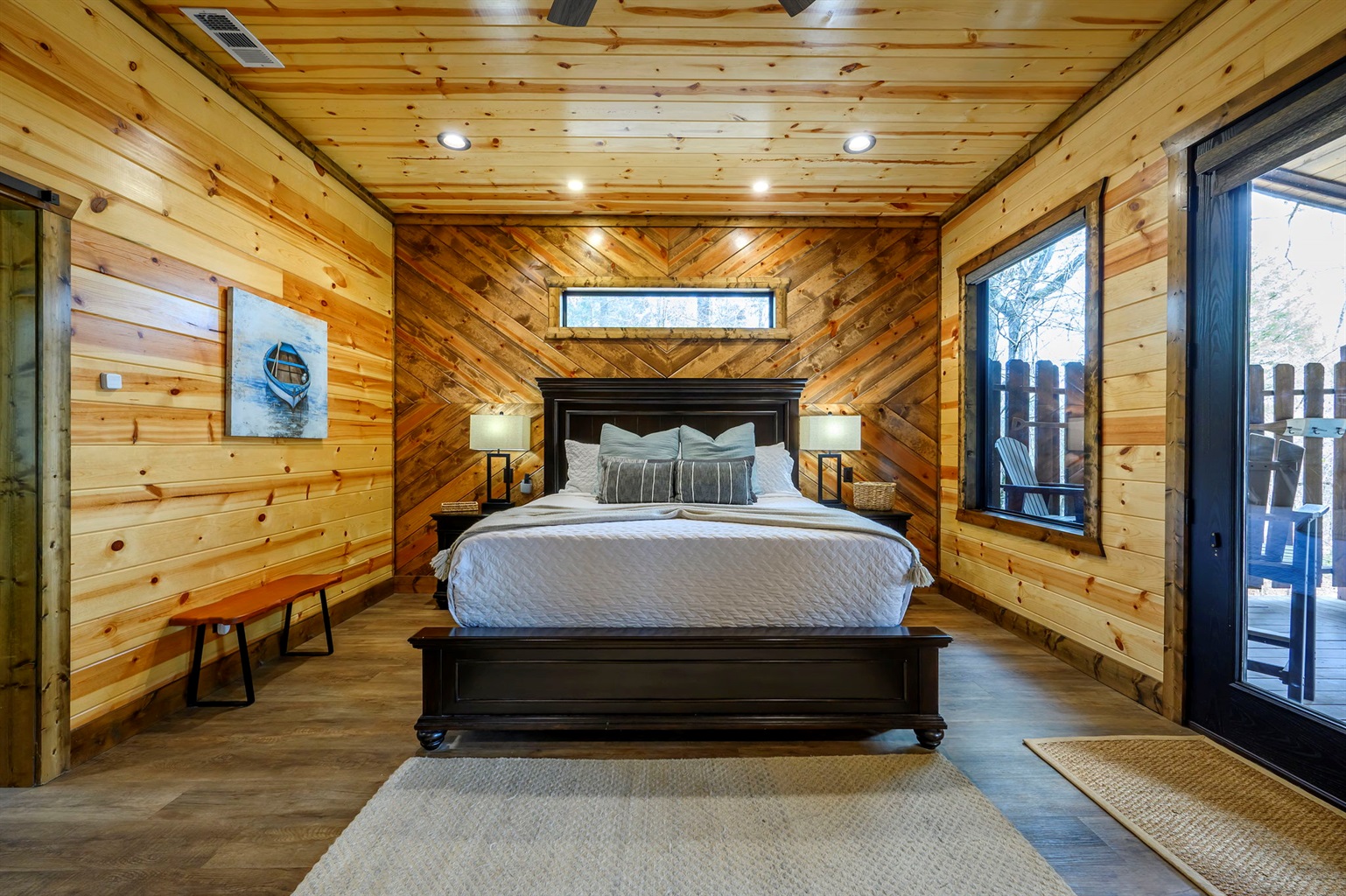 ☞ BR4: King bed + (2) queen-over-queen bunks with ensuite bath — perfect for families or groups.