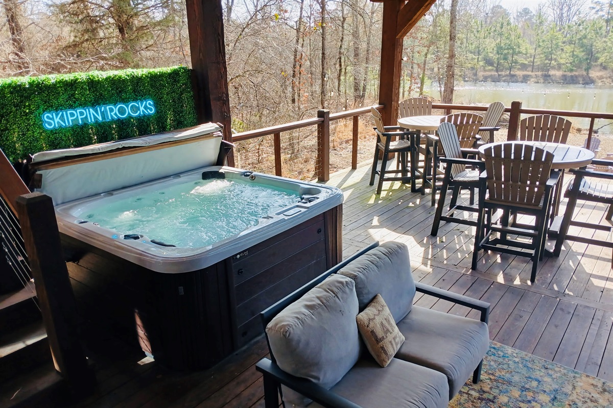 ☞ Private jetted hot tub for ultimate relaxation.