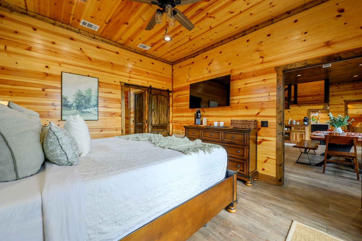 ☞ BR2: King bed with private bath and serene woodland views.
