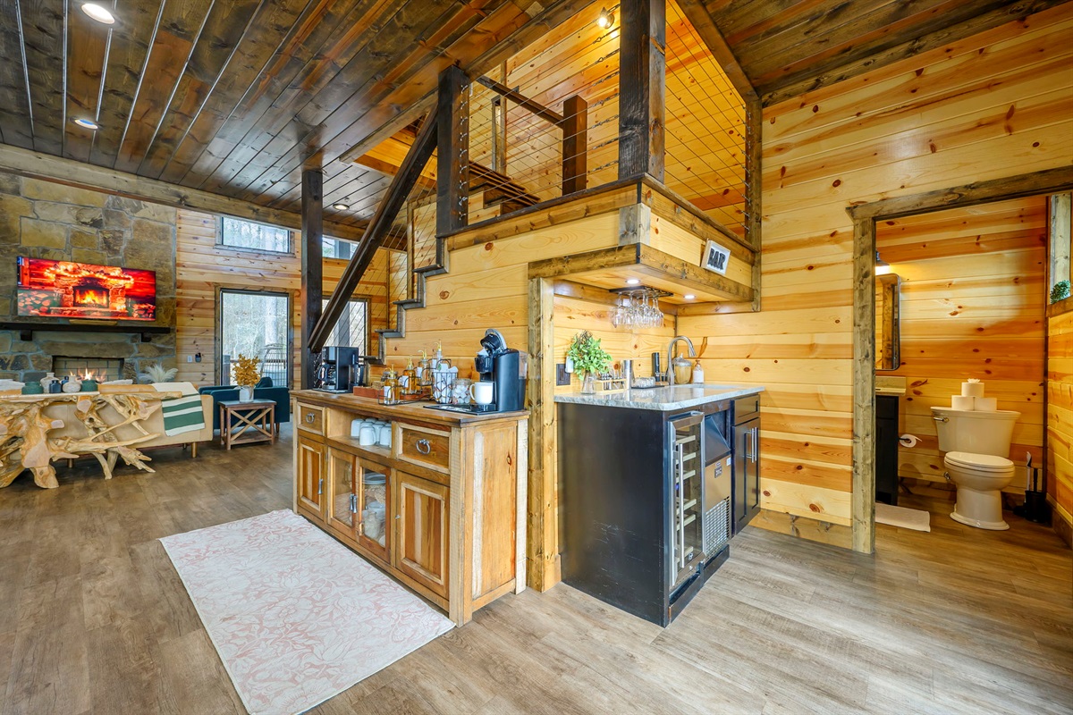 ☞ Wet bar with beverage fridge and ice maker for easy entertaining.